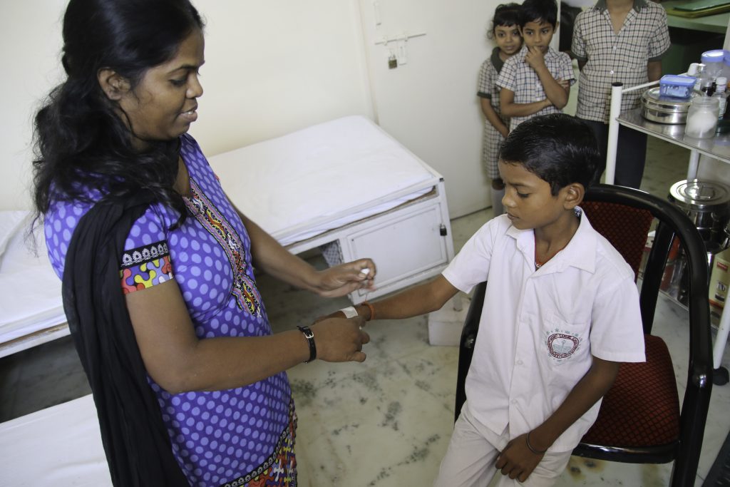 A team of three nurses and a doctor regularly monitor the well- being of the students, addressing health issues such as viral outbreaks, vitamin deficiency, intestinal worms etc. More serious ailments such as accidents, chronic illness and epidemics are handled with utmost promptitude and sensitivity. An annual medical examination helps to track growth and developmental changes.